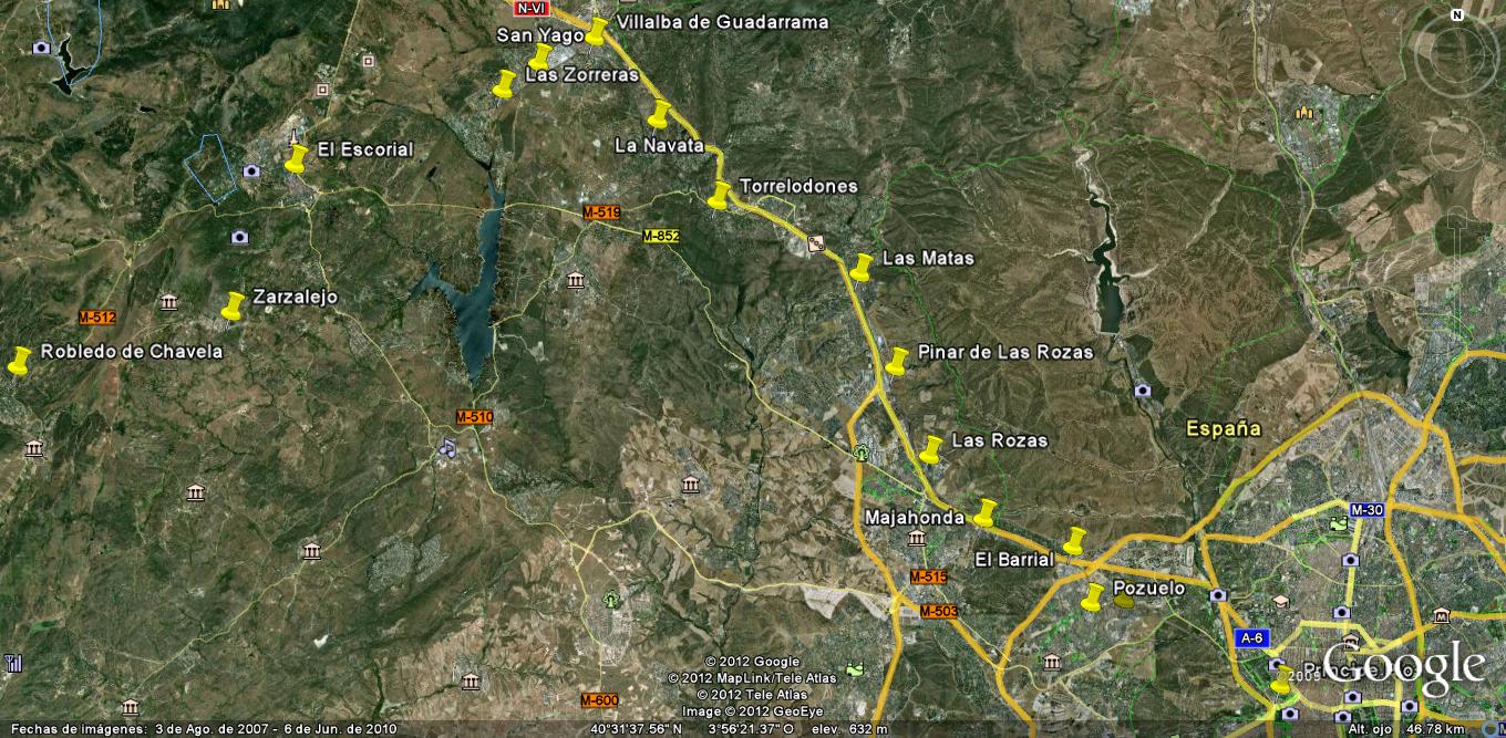 vamos llegando a Robledo de Chavela, pasando bajo la calle del Escorial, y mermamos la marcha por cambio de vias