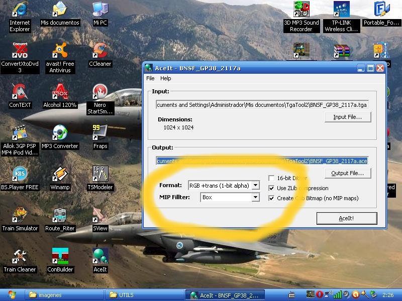 Excelente trabajo en este tutorial compañero Quique...pero creo que olvido agregar la compresión del formato BMP utilizando el AceIt o por defecto MakeACEWin que se encuentra en la carpeta UTILS de Train Simulator para después colocar este archivo ACE "ya comprimido" a su respectiva carpeta de la unidad en que se esta trabajando...Que no'?.