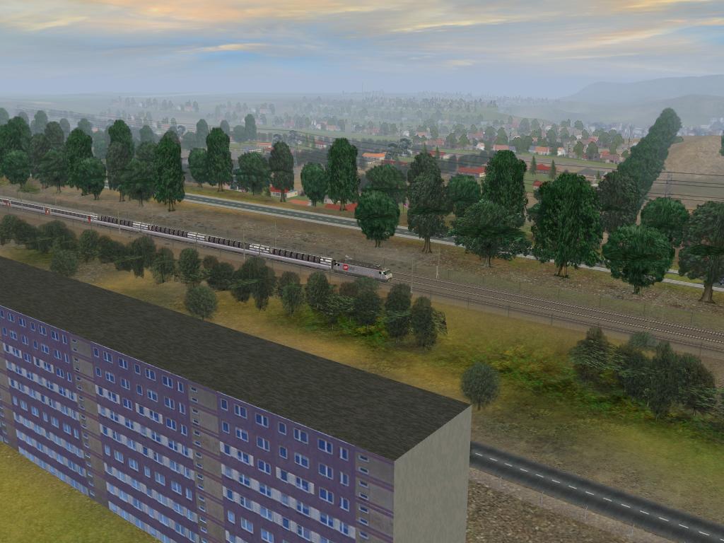 tremendas mejoras en cuanto a profundidad; asi que se recomienda poner la distancia de representación al máximo. los backdrops externos de casas dan la idea de enormes poblaciones sin quitar mucho rendimiento, por lo menos a mi se me mueve muy fluido. Le puse cerros y montañas por los bordes para ocultar el desagradable efecto de precipicio donde termina cada bloque del terreno. Por esto es muy bella tanto en vista de conductor como vista externa. Pinte algunos cerros con colores celestes que le dan apariencia de estar lejanos. Ademas en las estaciones hay personas moviéndose los cuales bajé de una página rusa por ahi. En definitiva una ruta de más de 300 kms. con muchos detalles y sin demasiadas dependencias externas asi que no tendrian problema para instalarla en cualquier trainz 2006 incluso la instalé en trainz 2009 sin errores. Espero comentarios. Pronto la subiré.... :wink:
