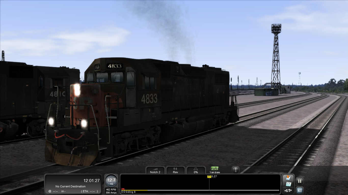 El de la imagen de arriba es el HUD F3 de los coches de control de piso doble de Virtual Railroads. El de la imagen con la locomotora GP-38 es el HUD F3 modificado por mí para que aparezcan los valores del regulador y el inversor con nombres y no con porcentajes.