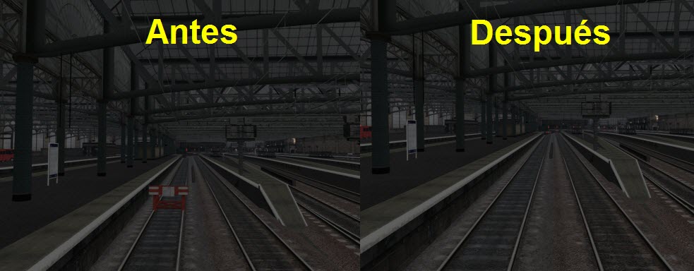 En esta actualización se ha añadido un tramo de vía faltante en la playa de vías de Kimgmoor, que por lo visto lo debí hacer desaparecer cuando reubiqué las toperas, y pasó totalmente inadvertido. :oops: