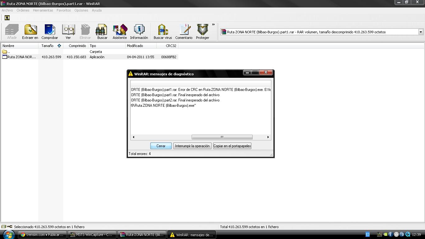 llamado "Ruta ZONA NORTE (Bilbao-Burgos).exe" de 391 MB.- ¿Tienes suficiente espacio en el disco duro? Ten en cuenta que debes sumar los 196 MB de la 1ª parte + los 195 MB de la 2ª + los 391 del .exe resultante, o sea, casi 800 MB libres en el disco duro.