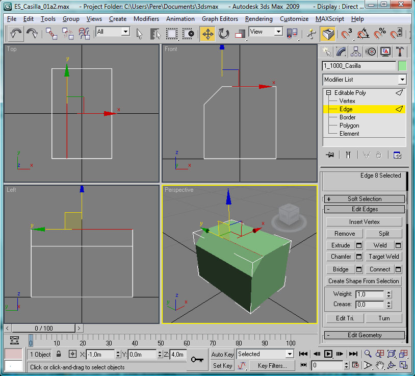 Si una vez ejecutado uno de estos procedimientos en el modelo no se aprecia ningún cambio, será seguramente porque el botón "Show Map in Viewport" no está pulsado. Pues lo pulsamos y ya nos debe aparecer la casilla correctamente texturada, por lo que podemos cerrar la ventana del "Material Editor" y apreciar la casilla en el editor 3D: