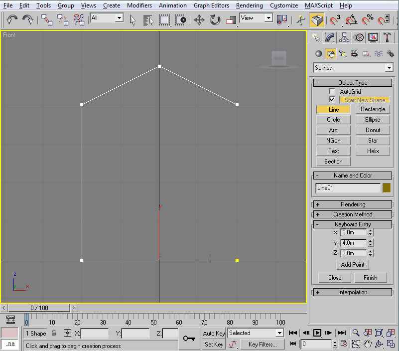 También veo que podré decidir si deseo visualizar el modelo con las superficies cerradas e iluminadas (Smooth + Highlights), o solo el armazón de aristas del modelo (Wireframe). Esto me da una cierta comodidad, pues empiezo a poder decidir en parte la manera en que trabajaré con el 3ds Max.