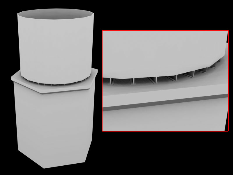 Donde he señalado en rojo el procedural, el cual recuerdo que debe tener todos sus puntos con la coordenada Y=0 (coordenada en 3ds), el pivote centrado en la escena y la extrusión de dicho procedural orientada en la dirección Y del pivot del objeto (con la longitud que deseemos para las texturas).