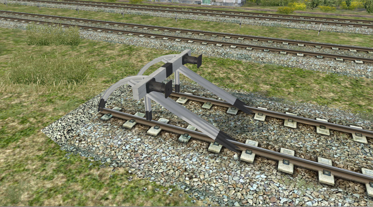 Respecto a los aparatos de vías, además de la numeración dinámica de todos los aparatos, en las marmitas y accionamientos se ha incluido la barra de espadines y la transmisión correspondiente, evidentemente sincronizada con el movimiento de los espadines: