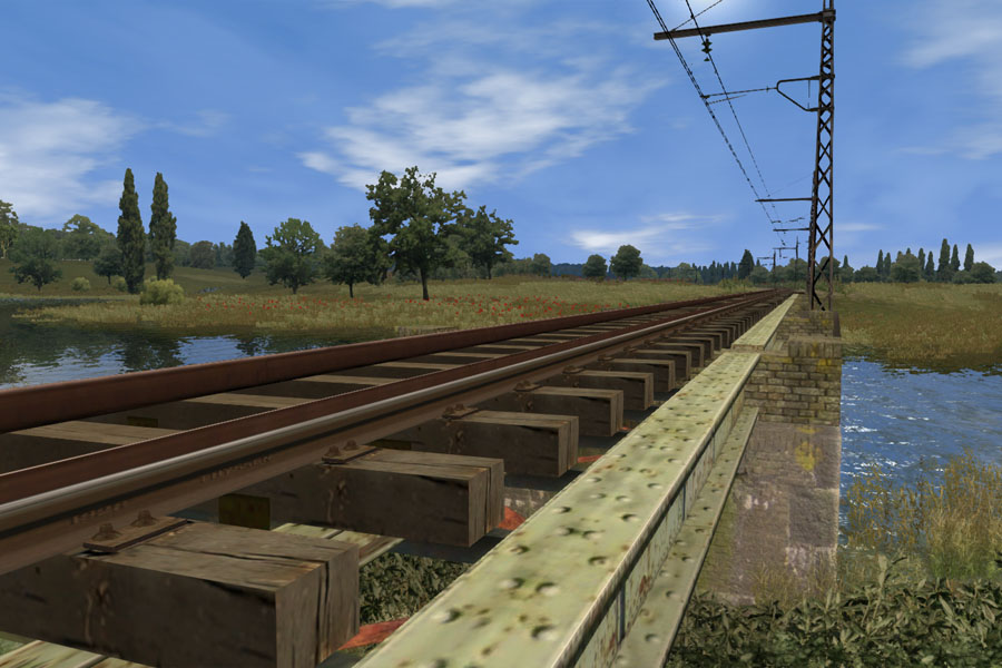 Así mismo Txus tiene razón al reclamar que existen otros diseñadores que han realizado vías de gran realismo y calidad. Nunca he dejado de comentar, y creo que en este mismo hilo encontraréis citas, que para mí son todo un referente las vías de Camber, a las cuales éstas no le intentan hacer sombra, ni podrían. Los recientes aparatos de vías realizados por Camber (Quattrostudios) para Trainz TRS2006-TS12 así lo muestran.